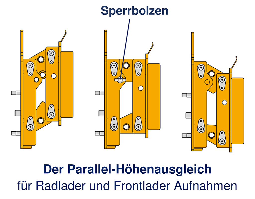 - Aufnahme zu Rad- bzw. Hoflader samt Parallel-Höhenaus-gleich sperrbar